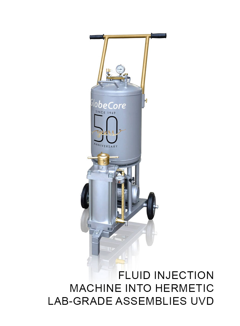 Fluid injection machine into hermetic lab-grade assemblies UVD