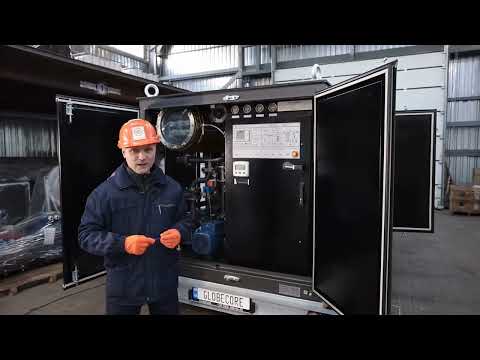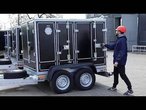 Die CMM-10 ist eine eigenständige Anlage mit allen notwendigen Komponenten und Bauteilen, die durch Metallplatten und Gasfeder-Türen an den Seiten und an der Rückseite geschützt sind. Die Container-Anlage befindet sich auf einem zugelassenen Tandem-Achs-Anhänger und ist bereit, jederzeit transportiert zu werden.